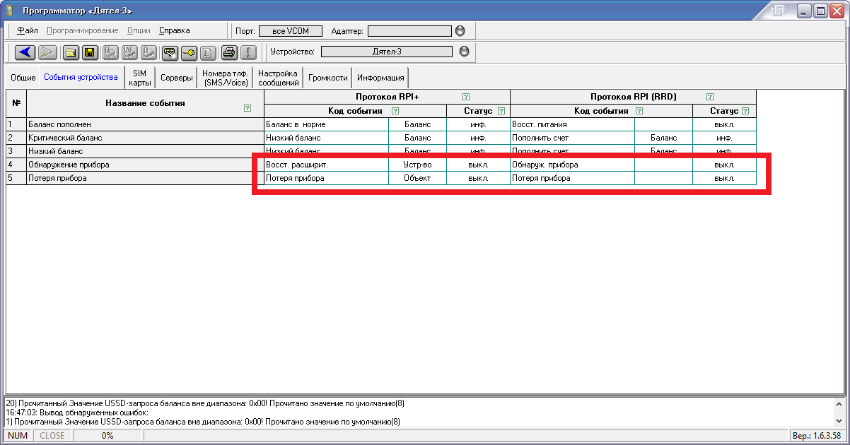 События устройства